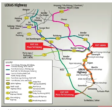 It offers an alternative to the North-South Expressway Southern Route and the Kuala Lumpur-Seremban Expressway. 2 20 min to Kajang Town 3 8 km to Kajang SILK Highway 4 10 km to Kajang Bypass 5 25 km to Kuala Lumpur-Seremban Highway PLUS - Kajang exit 6 10 km to Lebuhraya Kajang-Seremban LEKAS - interchange near Bandar Teknologi Kajang 7 10 min to LEKAS highway 8 10 min to Kajang-Cheras 9 5 min to Semenyih Town 10 10 min to SILK highway 11 3 km to. It is also accessible from Kajang Seremban Highway LEKAS via Ampangan exit.