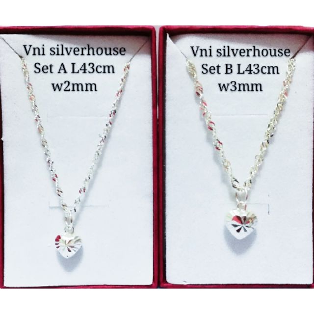 Silver 925 Necklace Pendant Set A B Rantai Loket 925银项链 Rantai Leher Perempuan Shopee Malaysia